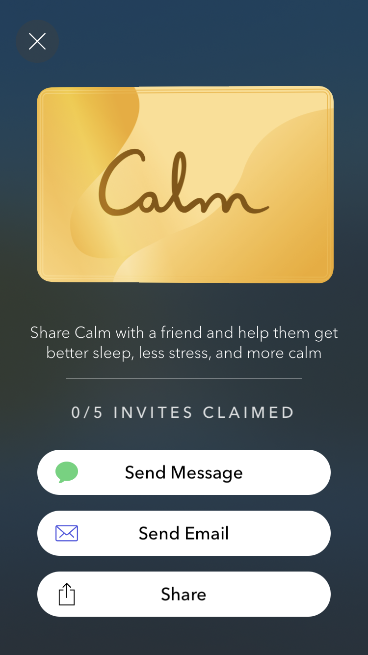 This project was a great experience in writing and designing on brand with an existing product. My solution was well received by users, and I truly stand by my design as a solution for Calm to envision how free trials are shared and received.